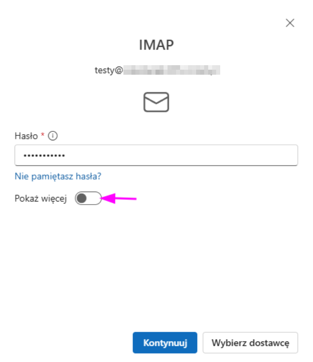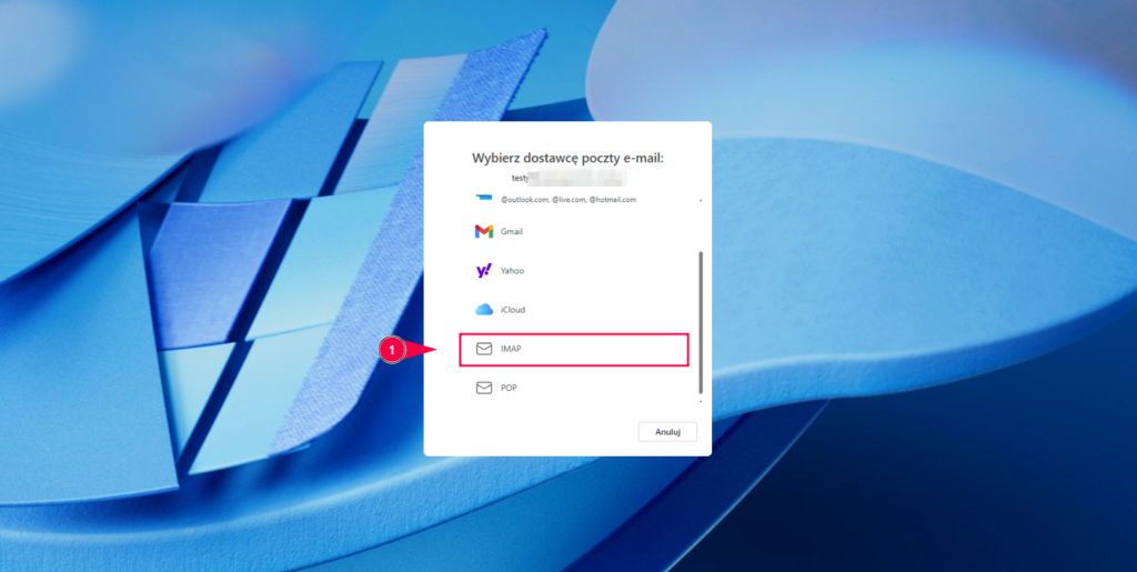 Wpisz swój adres mailowy oraz wybierz dostawcę poczty e-mail: IMAP
