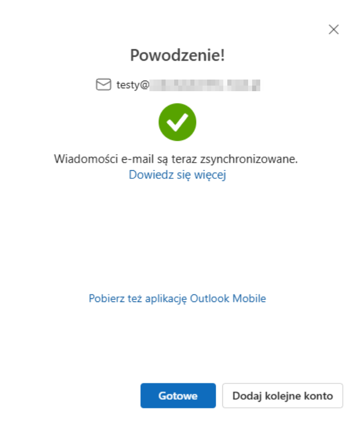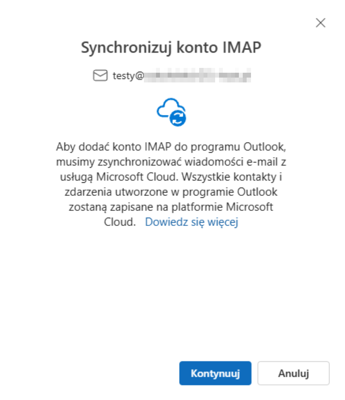 Po kliknięciu Kontynuuj zostaniesz poproszony o wyrażenie zgody na synchronizację konta IMAP. Po potwierdzeniu skrzynka zostanie dodana prawidłowo.