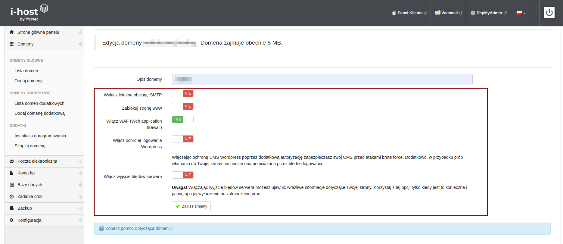 Jeśli interesuje Cię więcej informacji o domenach, to zapraszamy do sekcji: Domeny i DNS.